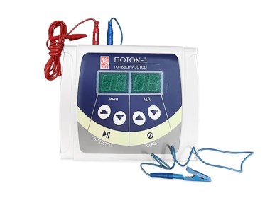 - Аппарат Поток-1 (гальванизатор) служит для профилактического и лечебного воздействия постоянным током на организм человека (гальванизации), а также для проведения лекарственного электрофореза в условиях клиники и стационара