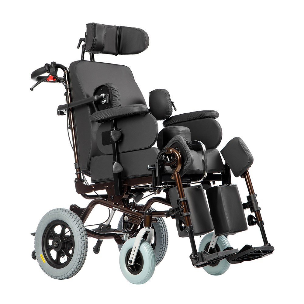 Дополнительные характеристикиЖесткое основание сиденья, Жесткое основание спинки, Мягкие боковые опоры для коленей, Откидные подножки, Подножки, регулируемые по углу наклона, Ручки для сопровождающего лица, регулируемые по высоте, оснащены системой торможения, Сиденье вместе со спинкой, плавно регулируемые по углу наклона при помощи рычагов на ручках для сопровождающего лица, Спинка, регулируемая по углу наклона при помощи рычагов на ручках для сопровождающего лица, Съемные колесные антиопрокидыватели с упором для сопровождающего лица, регулируемые по высоте, Съемные подлокотники, Съемный абдуктор, регулируемый по глубине, Съемный подголовник, регулируемый по высоте, углу наклона и охвату головы