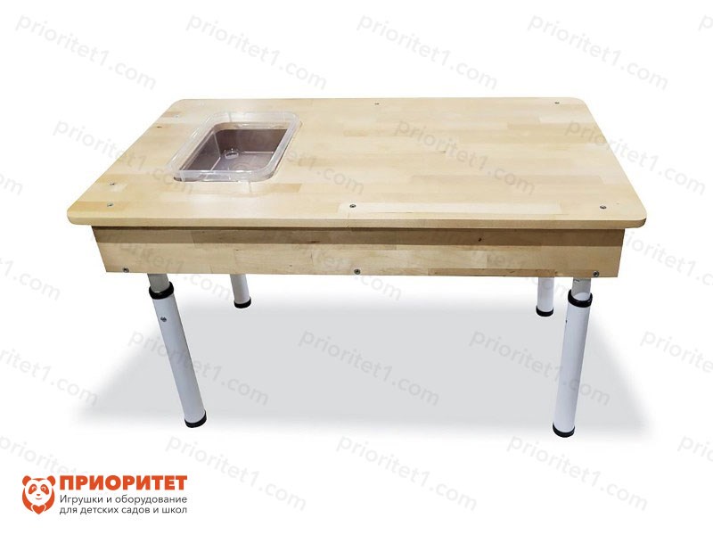 Дидактический стол предназначен для опытов с водой и песком. В поверхности стола сделана выемка, в которую вставляется таз прямоугольной формы. Его можно наполнить различными природными материалами.