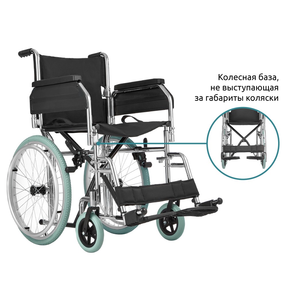 Кресло-коляска инвалидная малогабаритная Ortonica Home 60 отличается компактными размерами и колесной базой, не выступающей за габариты коляски. Может проходить в узкие дверные проемы.