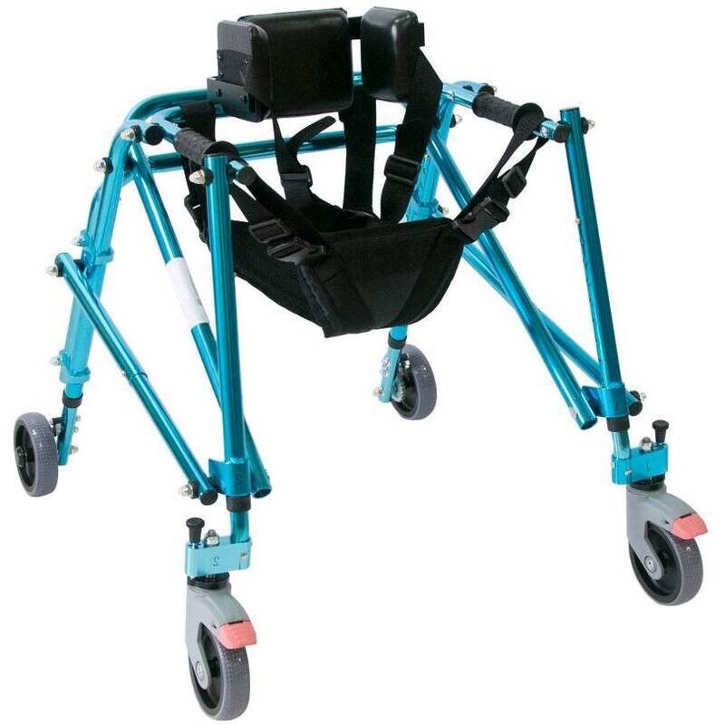 Ходунки на четырех колесах реверсивного типа предназначены для детей-инвалидов, страдающих различными формами ДЦП, способствуют устранению нарушений осанки и патологической установки стоп, помогают удерживать равновесие при ходьбе и стоянии.