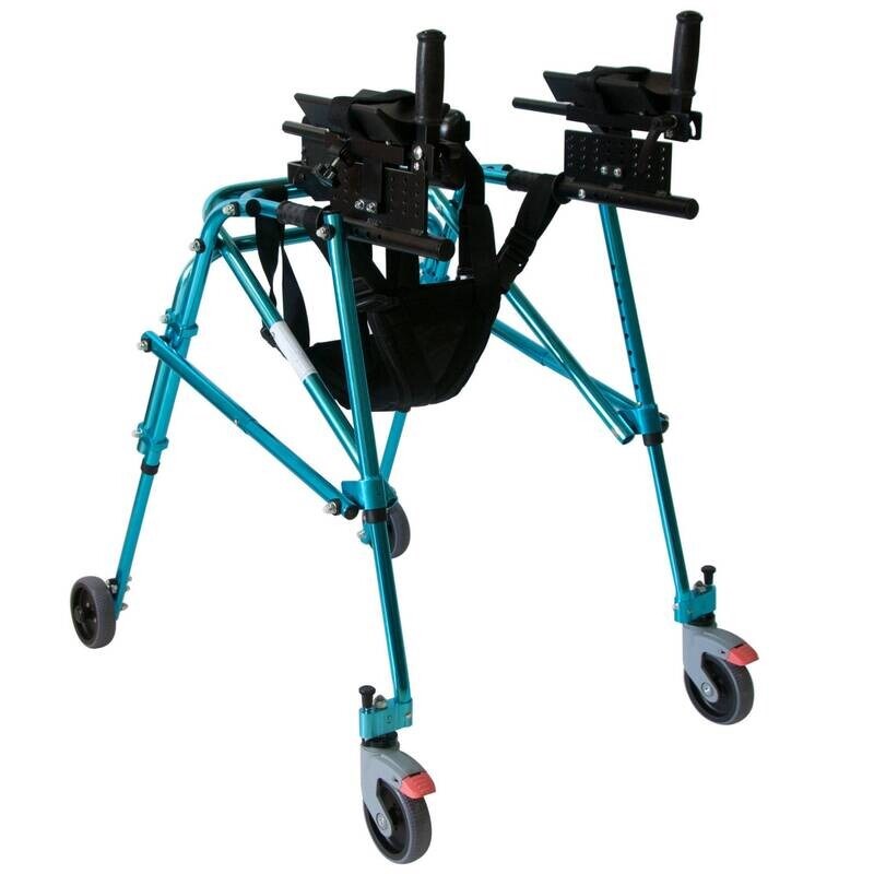 Ходунки на четырех колесах реверсивного типа предназначены для детей-инвалидов, страдающих различными формами ДЦП, способствуют устранению нарушений осанки и патологической установки стоп, помогают удерживать равновесие при ходьбе и стоянии.