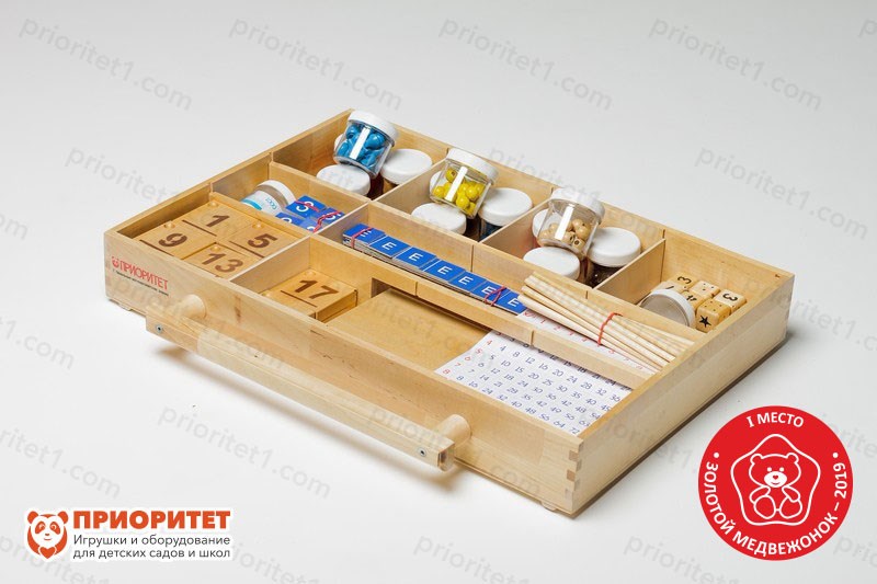 При подготовке к школе набор станет отменным и эффективным помощником. В состав модуля входит множество красочных элементов, которые помогут ребенку выучить цифры, понять, что в математике обозначает «больше» и «меньше», научиться проводить вычитание и сложение.