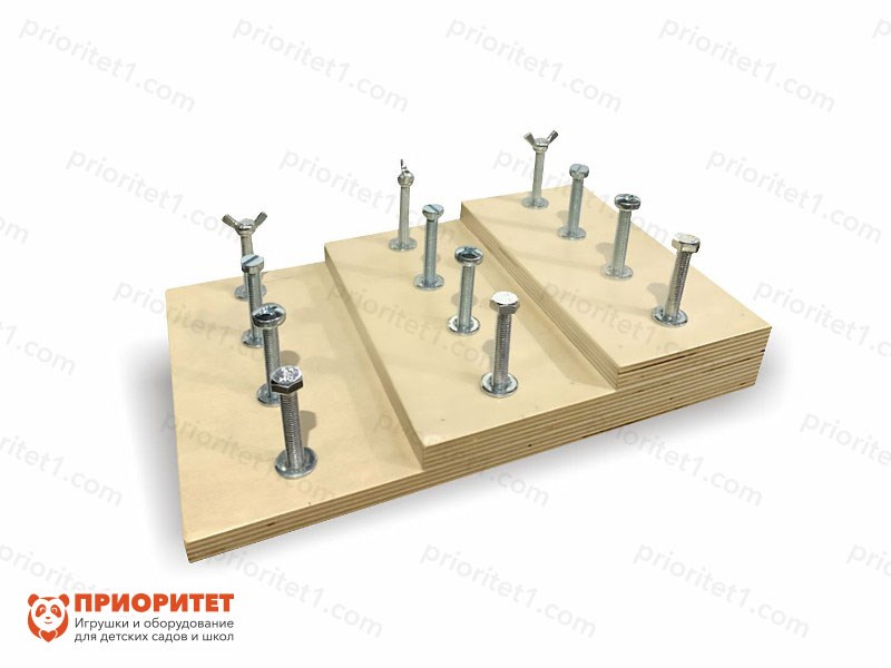 Деревянная панель с двенадцатью болтами привлечет внимание не только мальчиков, но и девочек. Тренажер для развития пальцев рук «Винтики» станет находкой для развития функций мелкой моторики. С его помощью ребенок учится закручивать и откручивать гайки пальцами рук. Панель рекомендуют применять в дошкольных группах компенсирующей направленности для деток с тяжелыми нарушениями речи. Уже неоднократно доказали связь речевого развития детей и мелкой моторики рук.