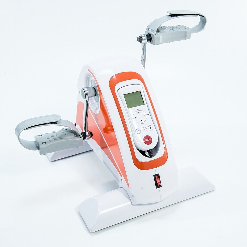 Тренажер с электродвигателем предназначен для разработки верхних и нижних конечностей больных в период реабилитации или инвалидов. Тренажер используется для вращательных упражнений рук или ног. Педали в этом тренажере крутятся самостоятельно, тем самым заставляя ноги (руки) работать. Тренажер работает как в обычном режиме так и реверсионном (назад).