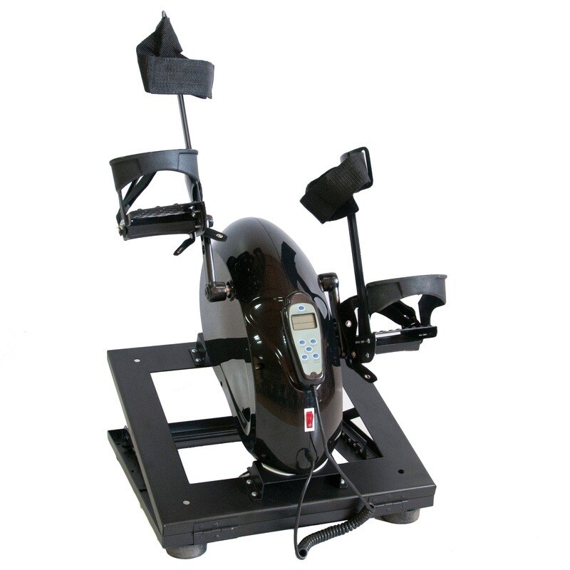 Велотренажер с электродвигателем предназначен для разработки рук и ног с помощью вращательных упражнений. Педали в тренажере крутятся самостоятельно с помощью электромотора.